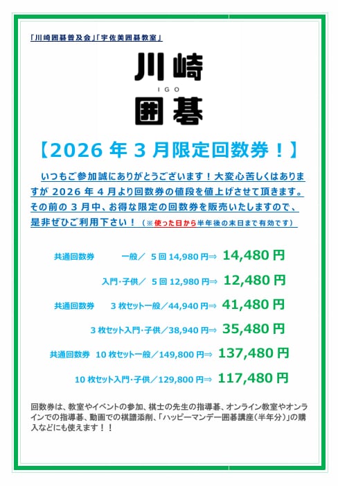 3月限定回数券を販売いたします!